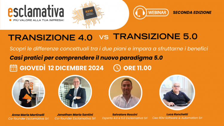 Questo webinar ti aiuterà a comprendere quando e come la Transizione 4.0 può essere ancora vantaggiosa, e in quali casi sia possibile evolvere verso la 5.0 per ottenere benefici maggiori.