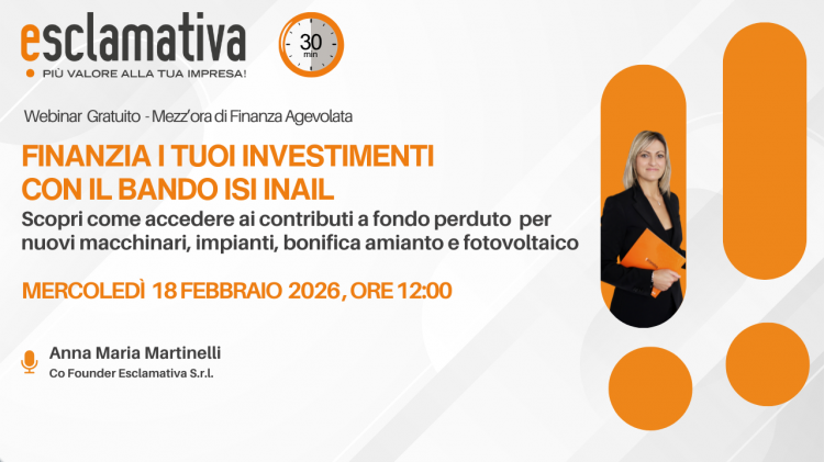 In questo webinar gratuito, Esclamativa guida le imprese nella comprensione del Bando ISI INAIL, chiarendo come orientarsi tra Assi di finanziamento, interventi ammissibili e modalità di presentazione della domanda.