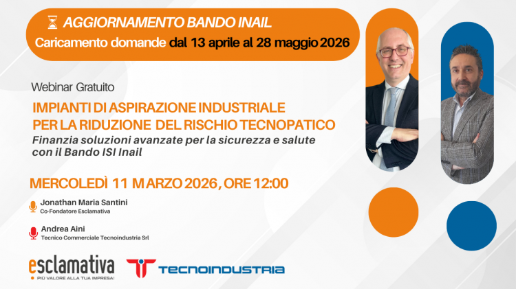 Nel webinar gratuito organizzato da Esclamativa in collaborazione con Tecnoindustria, affronteremo il tema da una doppia prospettiva: tecnica e finanziaria.