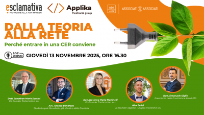 Dopo il successo del workshop a FARETE 2025, Esclamativa torna con un nuovo webinar dedicato alle Comunità Energetiche Rinnovabili. Un approfondimento pratico e concreto sui vantaggi economici e strategici per le imprese.